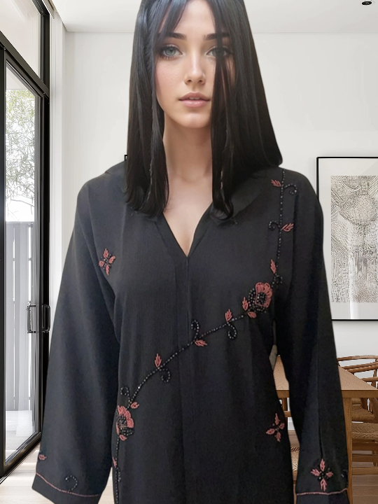 Leaf Both Side Cut dana Handmade Black Abaya AB007