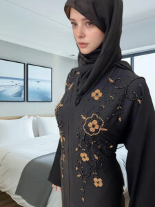 Handmade : Black Abaya Both Front Side Full Emb.